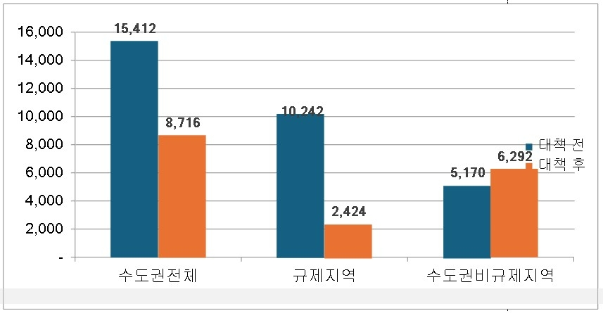 10·15 대책 이후 규제지역과 비규제지역 간 거래량 격차는 "풍선 효과"의 전형적 사례로 부상했다. 직방 분석에 따르면 규제지역 거래량은 76% 감소한 반면 비규제지역은 22% 증가하며, 수원 권선구(73%↑)와 화성시(59%↑)에서 특히 두드러진 수요 이동이 관찰되었다. 이는 문재인 정부 시절 통계 조작 논란과 유사한 정책 신뢰도 붕괴 양상을 보이며, 과거의 교훈을 반복하는 부동산 정책의 구조적 한계를 드러낸다. 특히 가격 상승 압력이 비규제지역으로 확산되며 정책의 예측 불가능성이 시장 혼란을 가속화하고 있다.